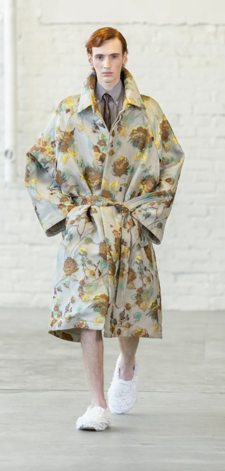 В Средневековье цветочный мотив прежде всего обозначал то, кем человек был рождён — его род, статус и место в социальной иерархии. В современной моде цветок функционирует иначе: он выражает не происхождение, а выбранную идентичность, демонстрируя, к каким идеям, стилям или сообществам человек стремится себя относить. При этом цветок обретает и новые значения: он становится носителем культурной и социальной памяти, отсылая к локальным традициям и коллективным образам; превращается в символ экологической осознанности и диалога с природой; помогает переосмыслить мужественность, вводя в мужской гардероб мотивы чувствительности и эмоциональной открытости. Такое расширение смыслов отражает переход от строгих социальных конструкций прошлого к культуре, где каждая личность свободно формирует собственный образ и систему ценностей.