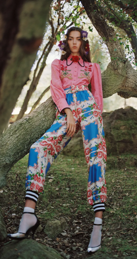 Творчество и самовыражение. Цветочные принты используются для создания ярких, запоминающихся образов, отражающих индивидуальность и творческий дух Gucci.