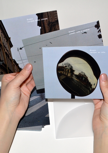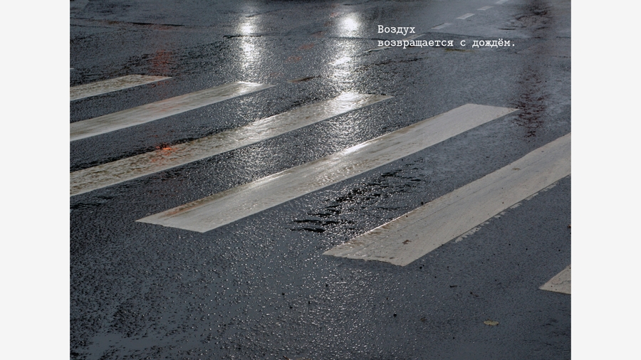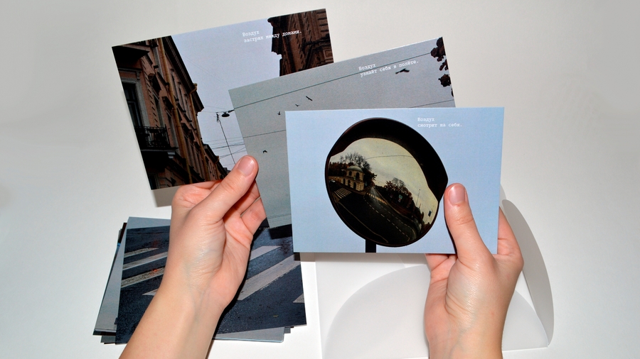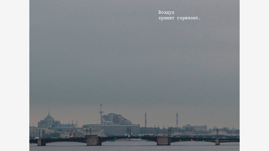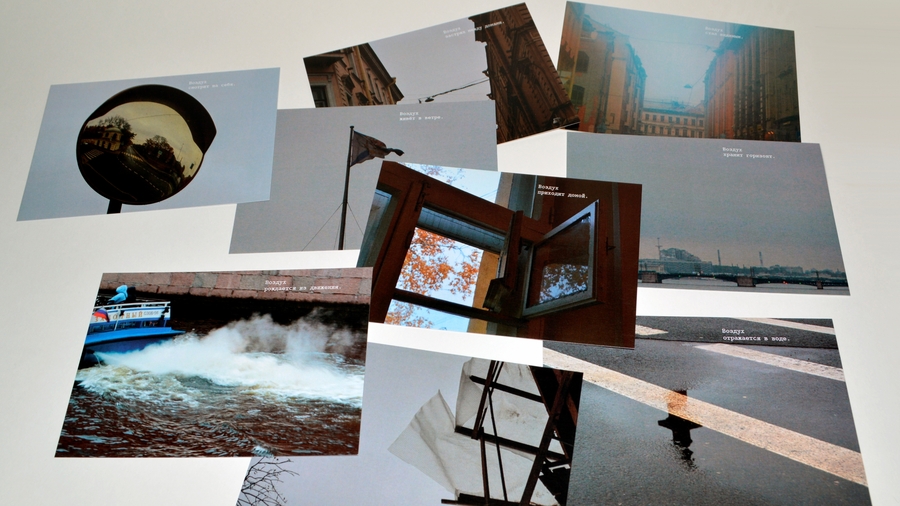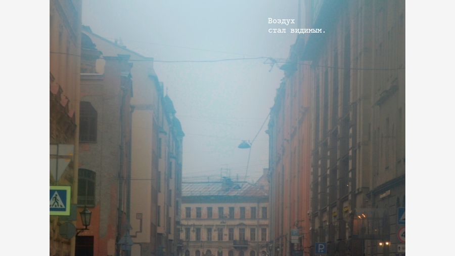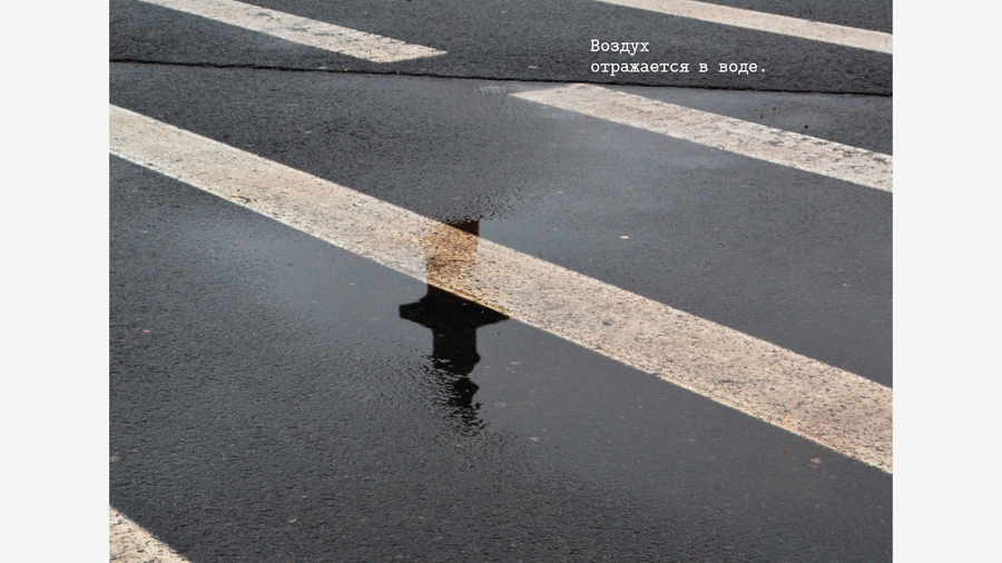 Оказалось, что воздух в Петербурге — в отражениях луж, в ветре, треплющем ткань на стройке, в крыльях птиц, в запотевшем окне, в приоткрытой форточке, в зеркале воды, где небо кажется ближе.