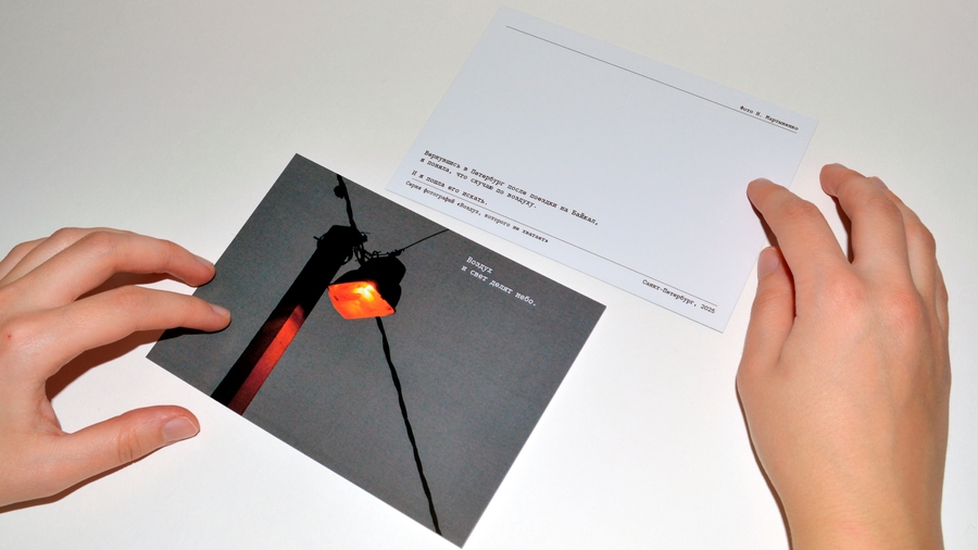 В оформлении обратной стороны я опиралась на эстетику старых коллекционных открыток с Байкала — как в выборе шрифта, так и в расположении элементов.