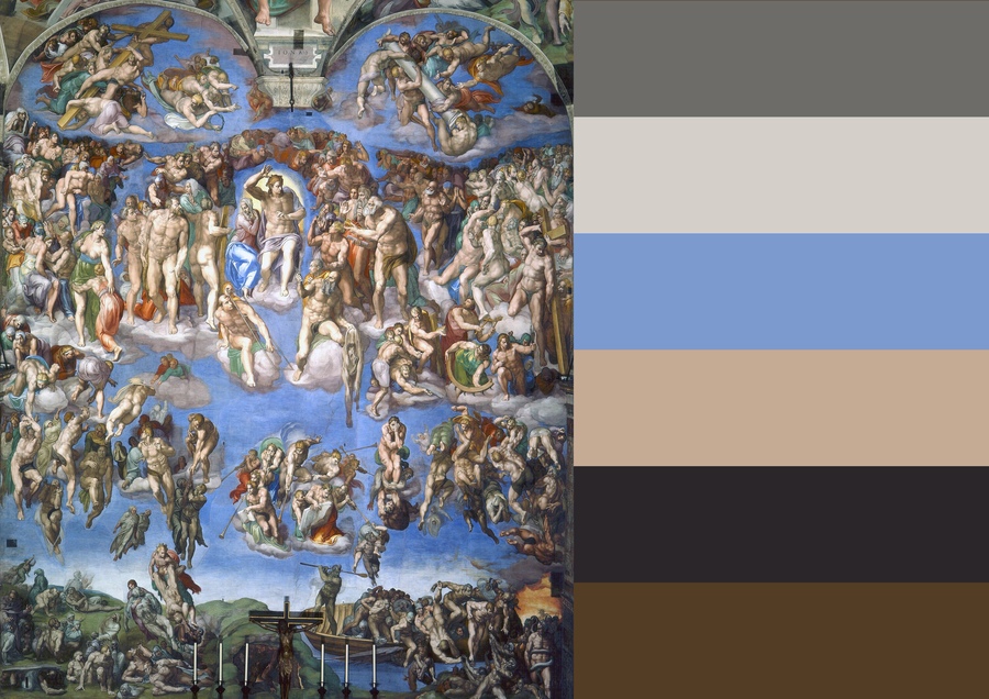 В «Страшном суде» сдержанная цветовая гамма подчеркивает монументальность композиции.