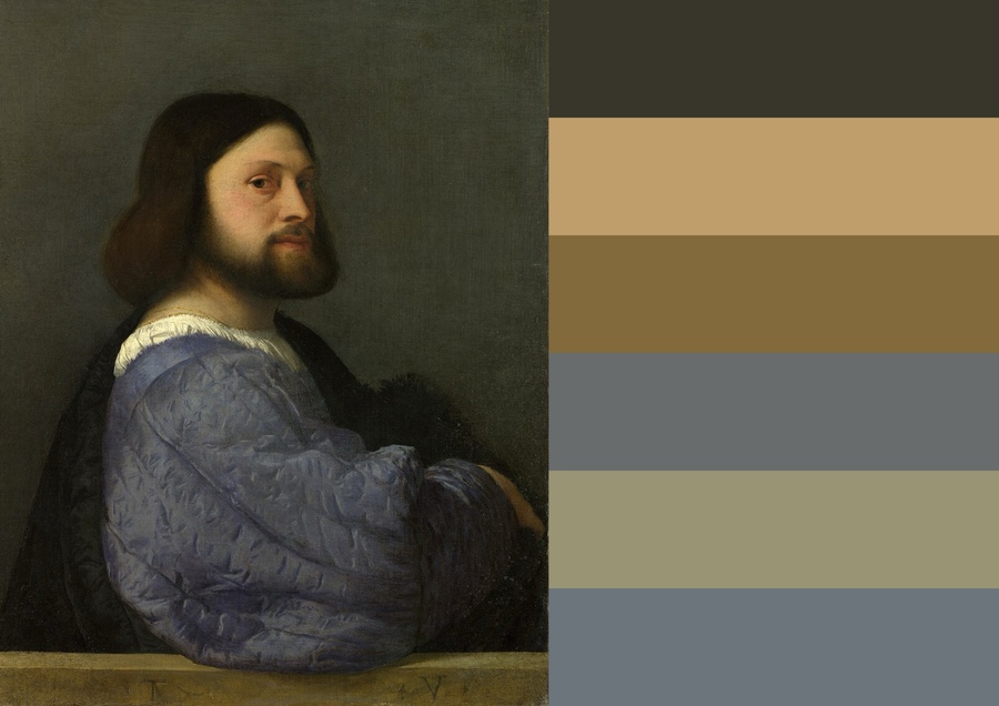 В «Портрете мужчины со стёганым рукавом» сложные цветовые решения подчеркивают характер героя.