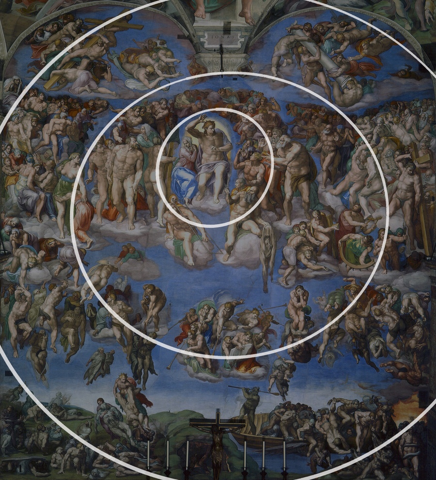 В «Страшном суде» Сложная спиралевидная композиция организует огромное количество фигур в единое целое. Леонардо изображает фигуры, чьи эмоции проявляются через напряжение мускулатуры и экспрессию поз. Телесность становится выражением духовной борьбы. Тела становятся выразителями таких эмоциональных состояний — от отчаяния до блаженства.