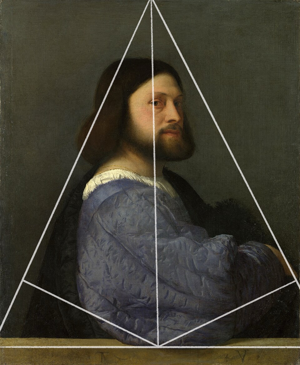 Тициан: 1. «Вознесение Девы Марии» (1516–1518). 2. «Портрет мужчины со стёганым рукавом» (1510)
