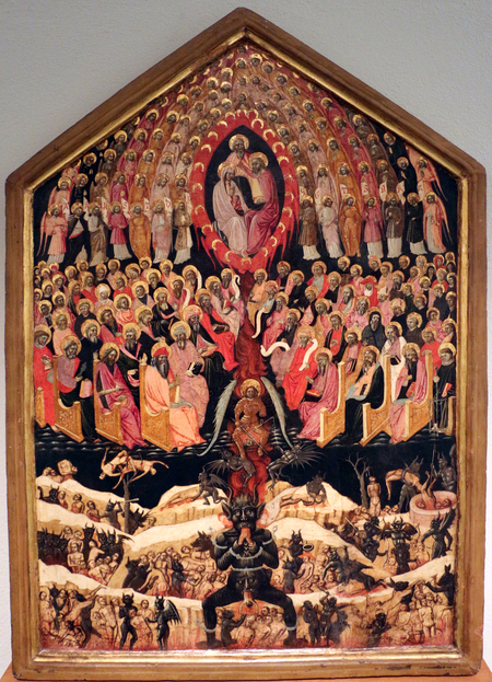 Ад же, наоборот, изображается мрачным темным местом, где царит хаос, а демоны раздирают людей. Количество попавших в ад примерно такое же, как и попавших в рай.