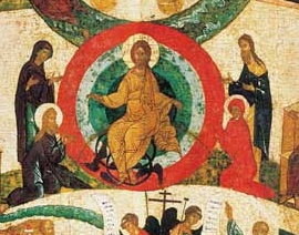 Очень часто рядом с Иисусом изображены дева Мария и Иоанн, которые молят его, возможно, о спасении людей.