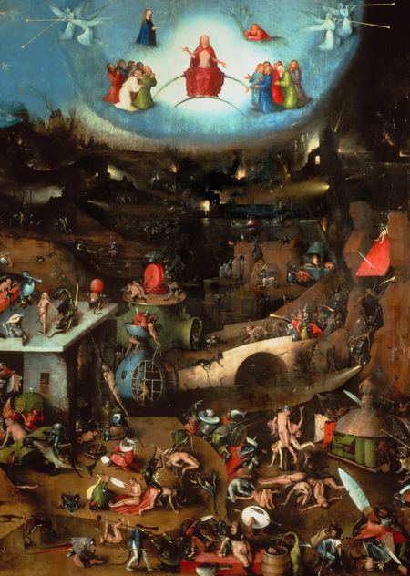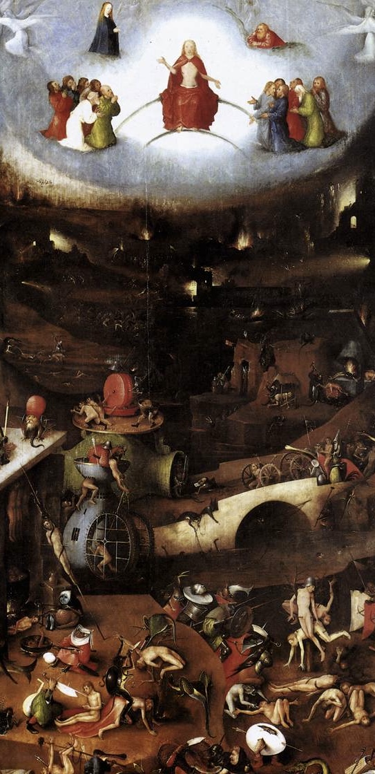 Итак, в Страшном суде Босха сохранено иконографическое разделение композиции: рай-земля-ад, а в центре Иисус с апостолами.