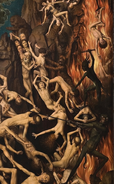 Но в отличие от привычного главенстования Христа и его справедливого суда, Босх делает центром картины мучения грешников и адские пытки. Именно они занимают большую часть работы, а святым отведено довольно мало места.