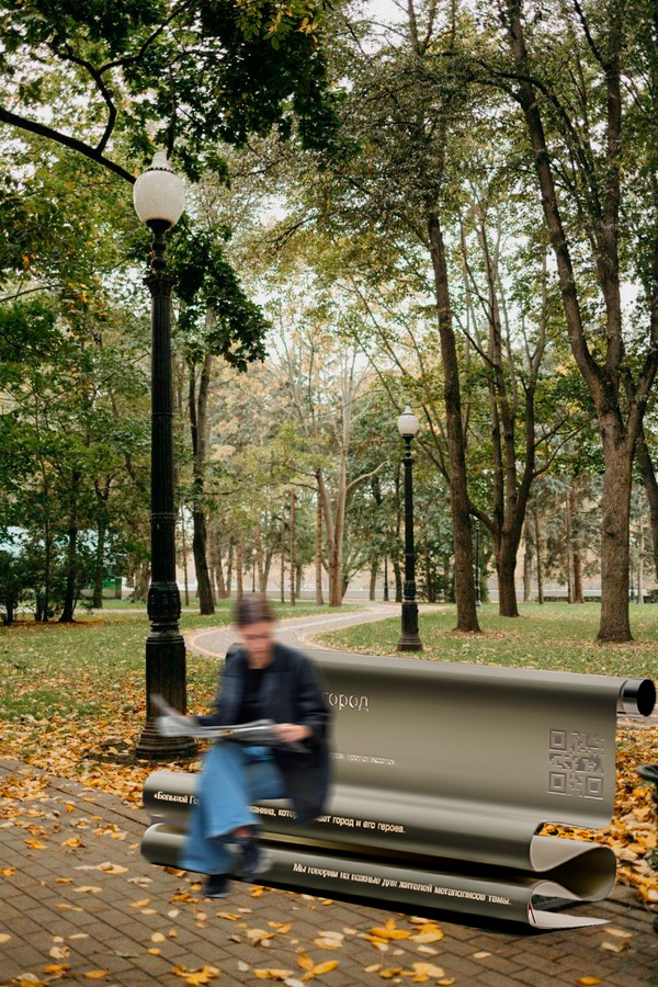 Этот арт-объект символизирует дух прошлого и наследие компании, отражая его через асимметричную форму, напоминающую сложенную газету — образ памяти, истории и традиций. Такая форма создает визуальную связь с прошлыми временами, подчеркивая преемственность и плавный переход от прошлого к настоящему.