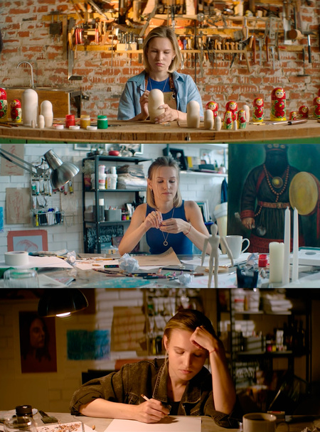 В фильме «Идеальная кисть / Матрешка» я работала в качестве главного художника-постановщика и художника по реквизиту.