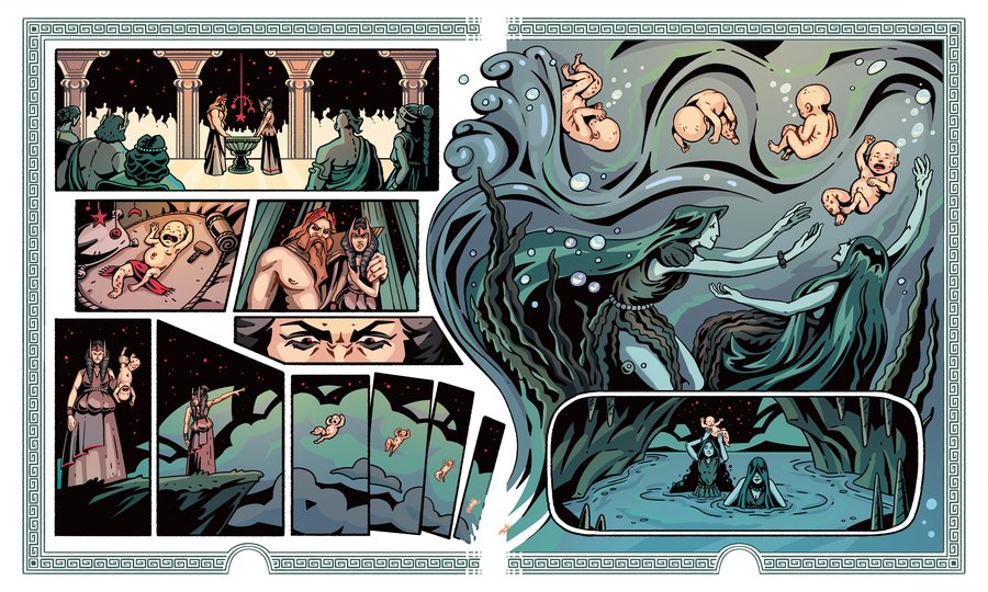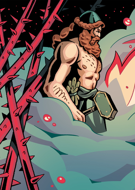Комикс по брифу, визуализирующий миф о происхождении Гефеста, бога-кузнеца греческого пантеона. За основу был взят текст из книги «Легенды и мифы Древней Греции» Н. А. Куна.