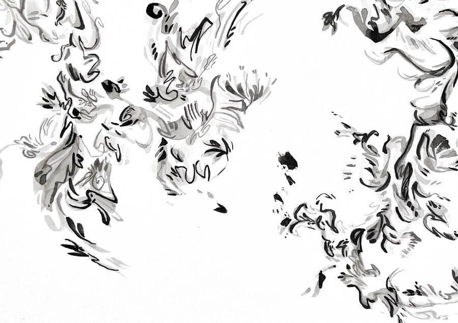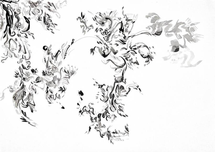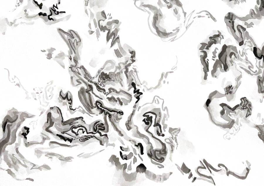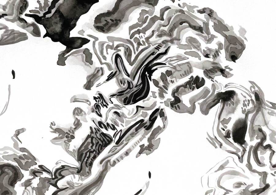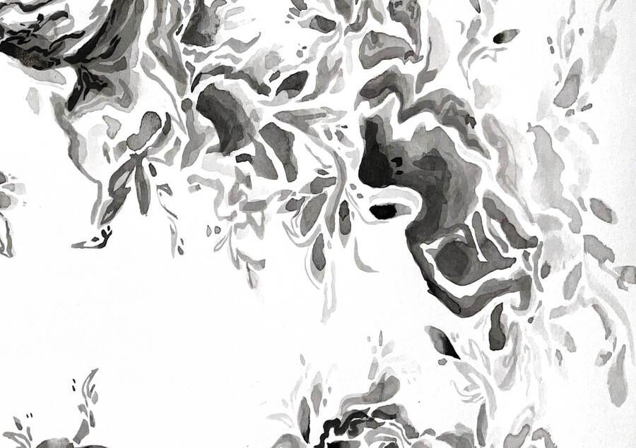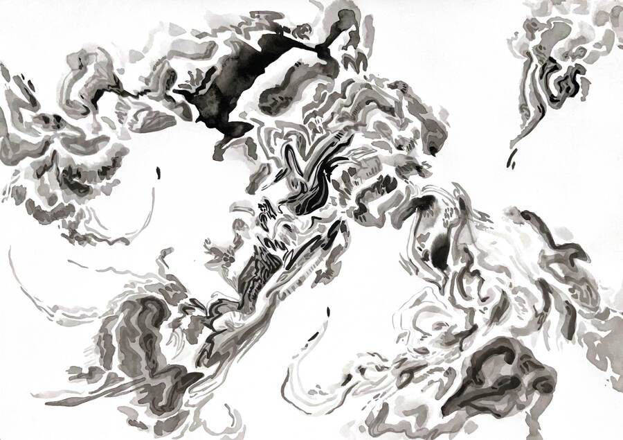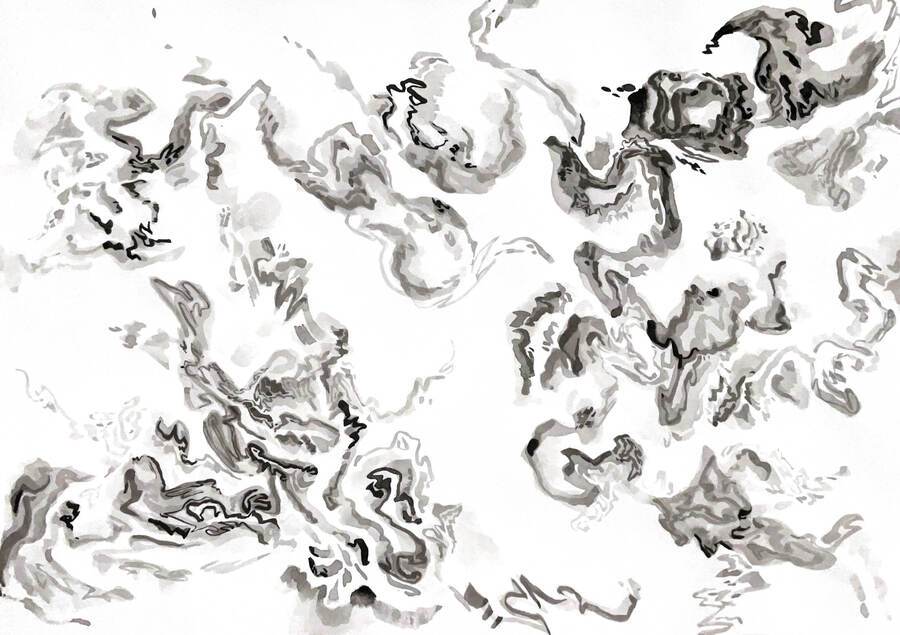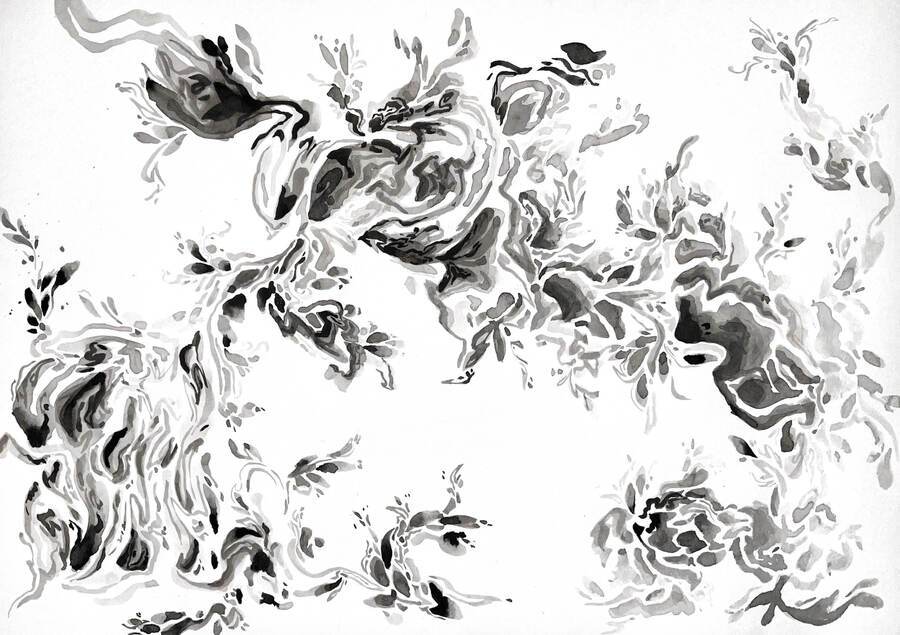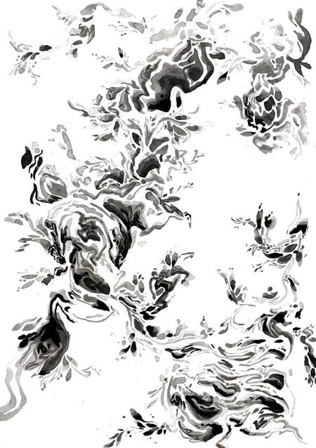 Серия абстрактных композиций в технике «икигай» посвящена любви к созданию в моменте, наслаждения процессом и радости от результата.