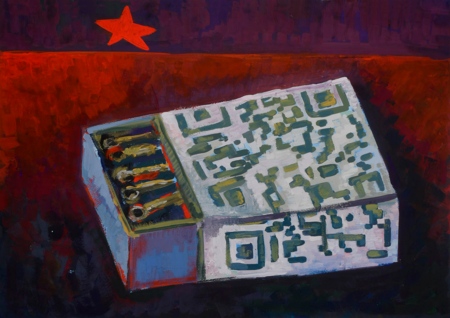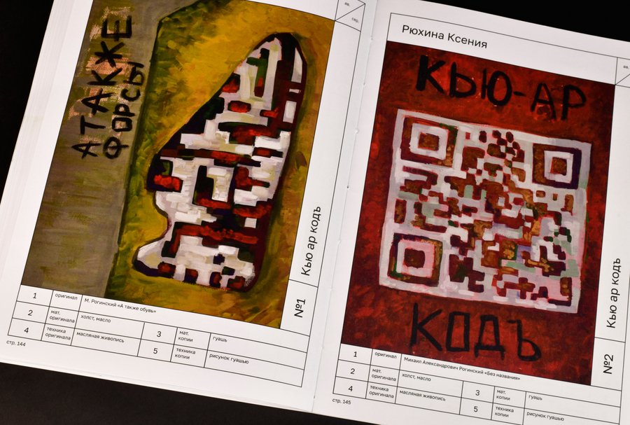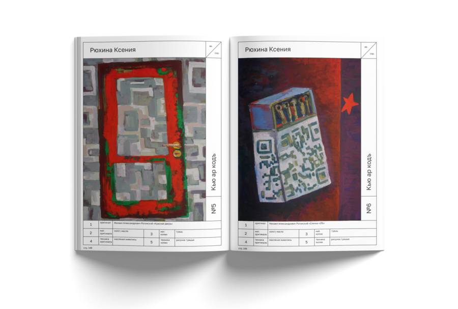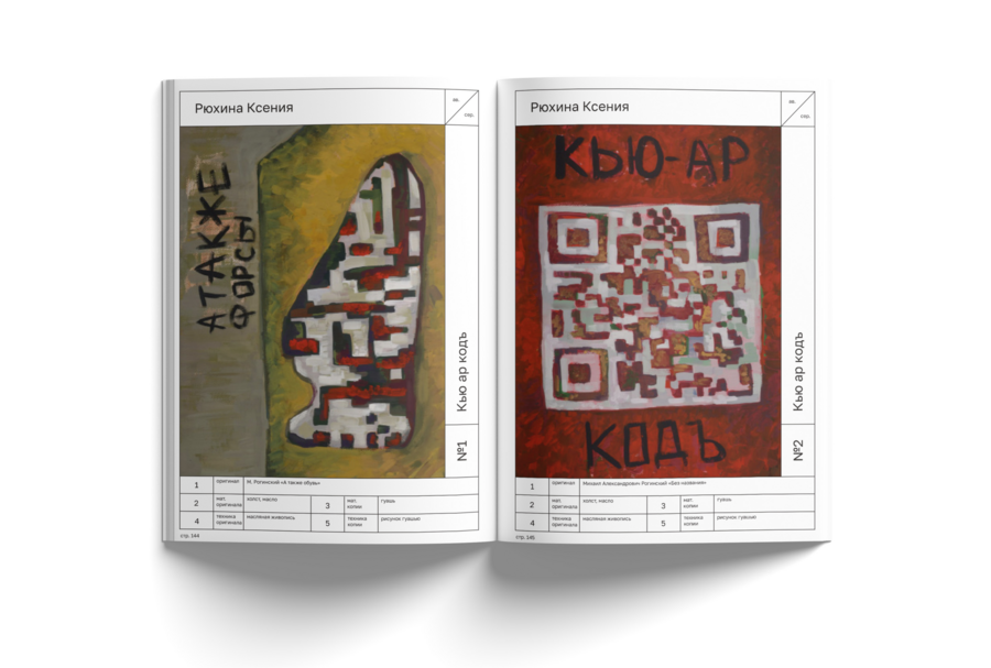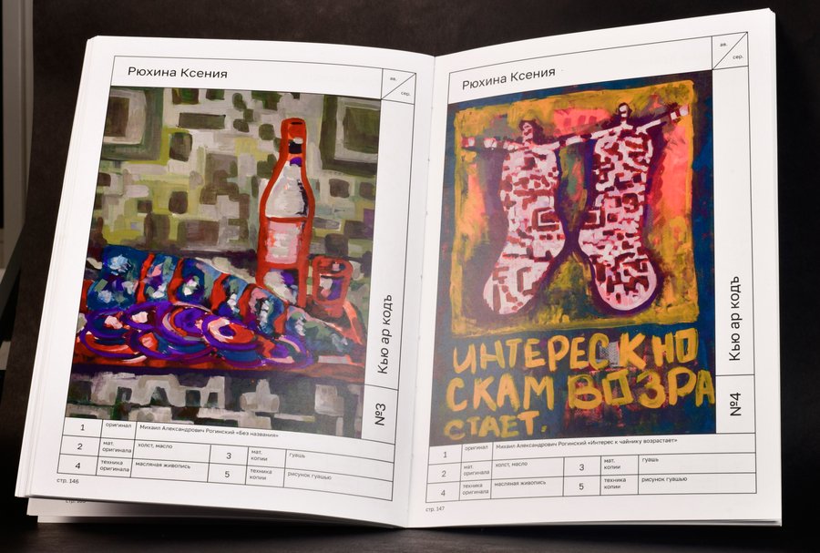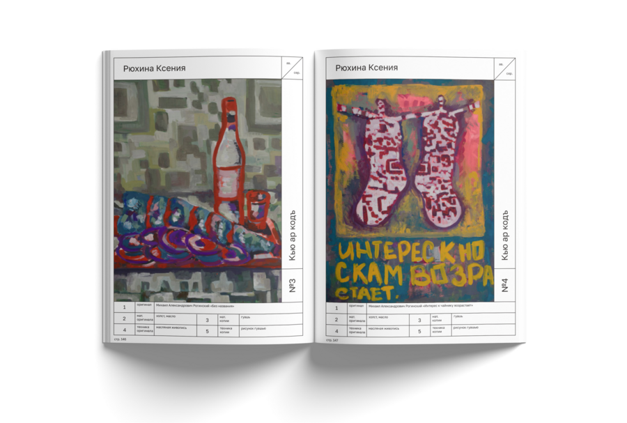 Работы Михаила Рогинского неразрывно связаны с этим понятием: рисуя, художник не изображал объект, а констатировал факт его существования. Продолжая «рогинскую» традицию письма, я создала проект, в котором констатация факта осмысляется с точки зрения современности. Сегодня, в век цифровизации, факт фиксируется не через внешние признаки, а через чёрно-белый кью-ар код, который мы безмолвно предъявляем на пункте выдачи: минимум изобразительных средств — и все всё понимают.