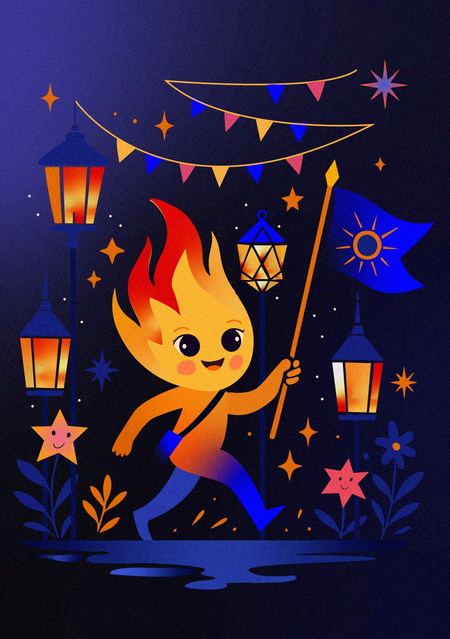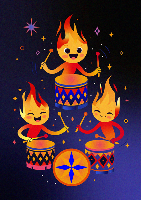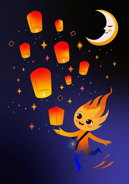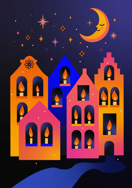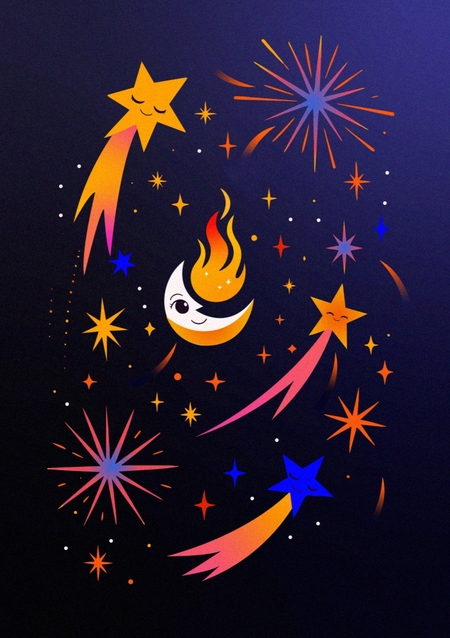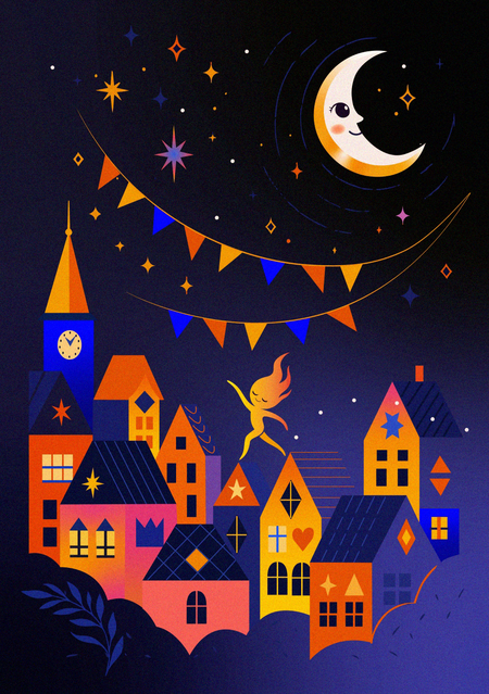 Серия из 13 праздничных открыток для агентства, организующего праздники и фестивали, вдохновлённые ночной атмосферой, светом и огнём.