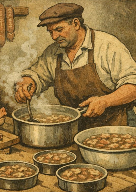 На окраине Павловского Посада, там, где улочки становятся просёлочными дорогами, а воздух пахнет влажной хвоей с ближних лесов, стоял старый дом. Точнее, он не просто стоял — он прятался. Его скрывали заросли сирени и яблони-дички, а высокий забор из тёмного дерева был скорее продолжением леса, чем творением рук человеческих. В доме этом жил человек, о котором говорили вполголоса. Его звали Матвей, но все знали его как Хранителя Рецепт, который он стерёг, не был записан на бумаге. Ни в одной кулинарной книге, ни на одном пожелтевшем листке в семейном блокноте вы его не нашли бы. Он существовал как последовательность движений, как тишина между словами, как особый ритм, который отбивало сердце во время готовки. Говорили, что принесён он был в Посад странником с Уральских гор много зим назад и передан самому ответственному и молчаливому мастеру. И с тех пор передавался из рук в руки, от отца к сыну или, как случилось с Матвеем, от бездетного старого мастера — к сироте с чистыми глазами и спокойными руками. Раз в год, в ночь на первое зимнее полнолуние, Матвей запирал свою мастерскую. Он не начинал готовить. Он настраивался. Сначала — на тишину. Не на отсутствие звуков, а на ту глубинную тишину, что стоит в зимнем лесу, когда снег поглощает всё. Он слушал, пока шум города в его голове не стихал, уступая место другому гулу — медленному, вечному гулу спящей земли. Потом приносил воду. Не из-под крана, и даже не из колодца. Он шёл к старому роднику у Каменки, тому, что бьёт из-под корней вековой сосны. Брал воду в момент, когда луна отражалась в ледяной чаше источника целиком, не дрожа. И вот тут начиналось главное. Мясо — всегда от трёх животных: птицы (небо), свиньи (земля) и телёнка (молодость). Варил он их не вместе, а в трёх разных котлах, что стояли на одной широкой плите, образуя треугольник. Огонь под ними должен был быть разным: под птицей — высокий и танцующий, под свининой — ровный и основательный, под телятиной — самый слабый, тлеющий.