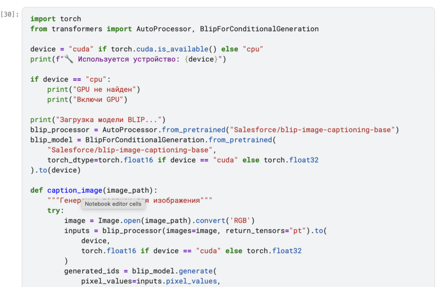 Загрузила модель BLIP для создания описаний к полученным 37 изображениям.