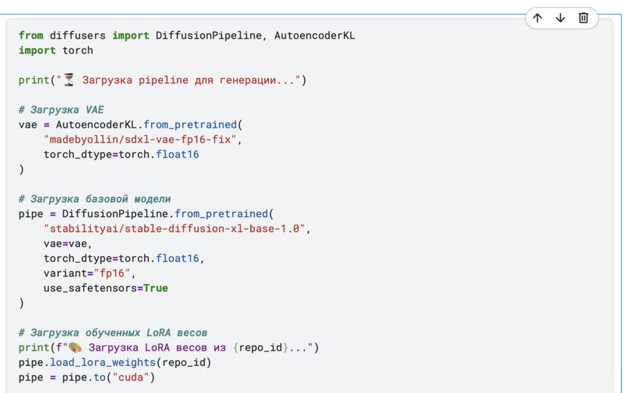 — Stable Diffusion для обучения генеративной нейросети под свой стиль; — Kaggle для выполнения кода и генераций; — Hugging Face для получение токена для обучения нейросети, загрузка полученной модели на сайт. — iloveimg.com улучшения качества полученных изображений.