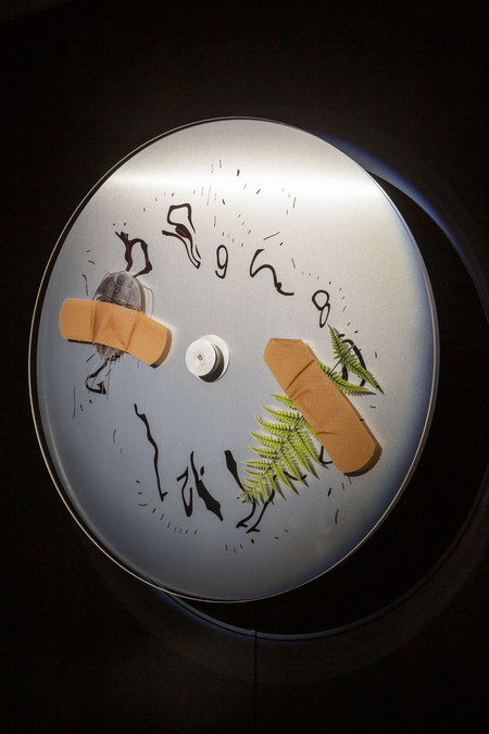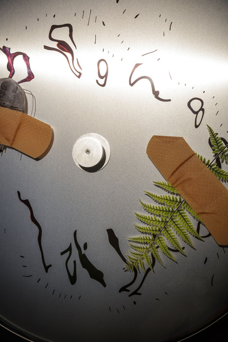 В инсталляции «Braudel’s Clocks» Полска строит шесть часов, каждые из которых идут в своём темпе и собирают на поверхности случайные следы — окурки, пыль, насекомых, листья. Визуально это почти энтропийный объект: деградирующие механизмы, рассыпающееся время, медленное замусоривание поверхности. Минимальное различие — разный ритм ходов, небольшое расхождение стрелок, микросдвиг в звуке — создаёт мощное ощущение «множества времён» и собственной потерянности внутри них. Зритель телесно переживает фрагментацию исторического времени: часы выглядят одинаковыми, но именно их небольшие расхождения и хаотичные следы жизни порождают смысл о распаде единого хода истории.