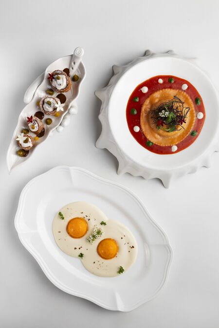 Шеф Touch Chefs Place & Bar Никита Кузьменко, создавая сет для юбилейного МГФ, вернулся к блюдам из самого первого меню ресторана, чтобы переосмыслить их. «Провокация сменилась на сдержанность, игра — на чистоту, а эффект — на смысл», — резюмирует Кузьменко, и предлагает попробовать тунца с малиновой кровью, гребешка с козьим сыром и долму с начинкой из осетра и костного мозга.