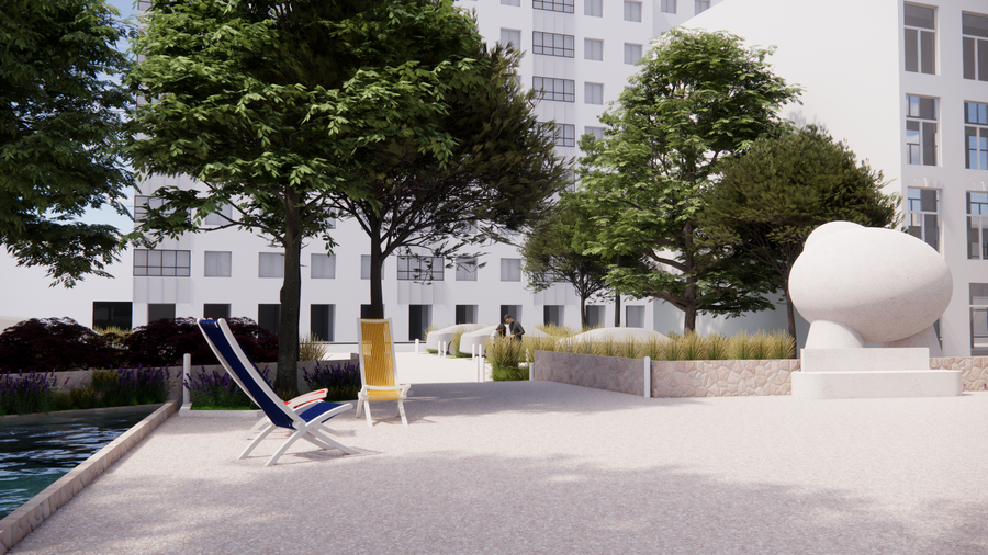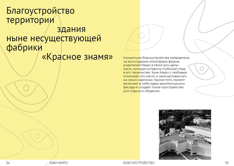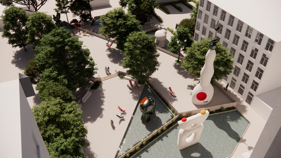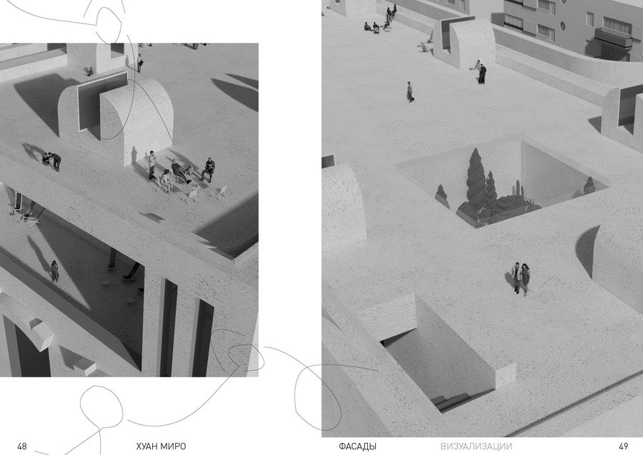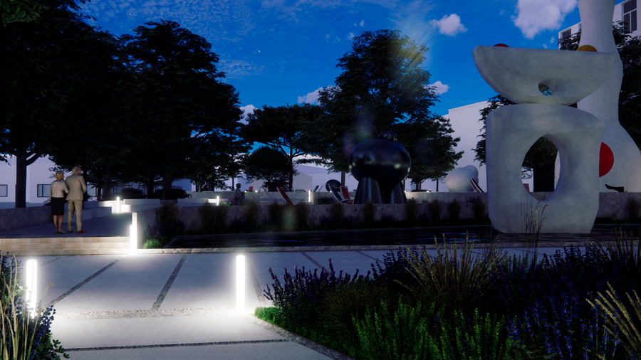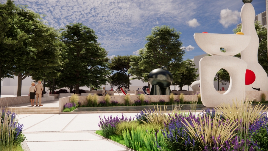 Концепция благоустройства направлена на воссоздание фермы родителей Миро в Монт-роч-дель-Камп, которая оставила глубокий след в его творчестве. Хуан Миро с любовью описывал это место и запечатлевал его на своих картинах. Кроме того, проект включает в себя идею архитектурного фасада и создает тихое пространство для отдыха и общения.