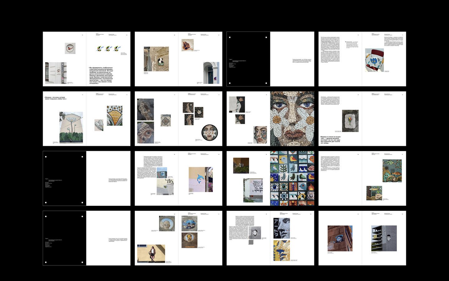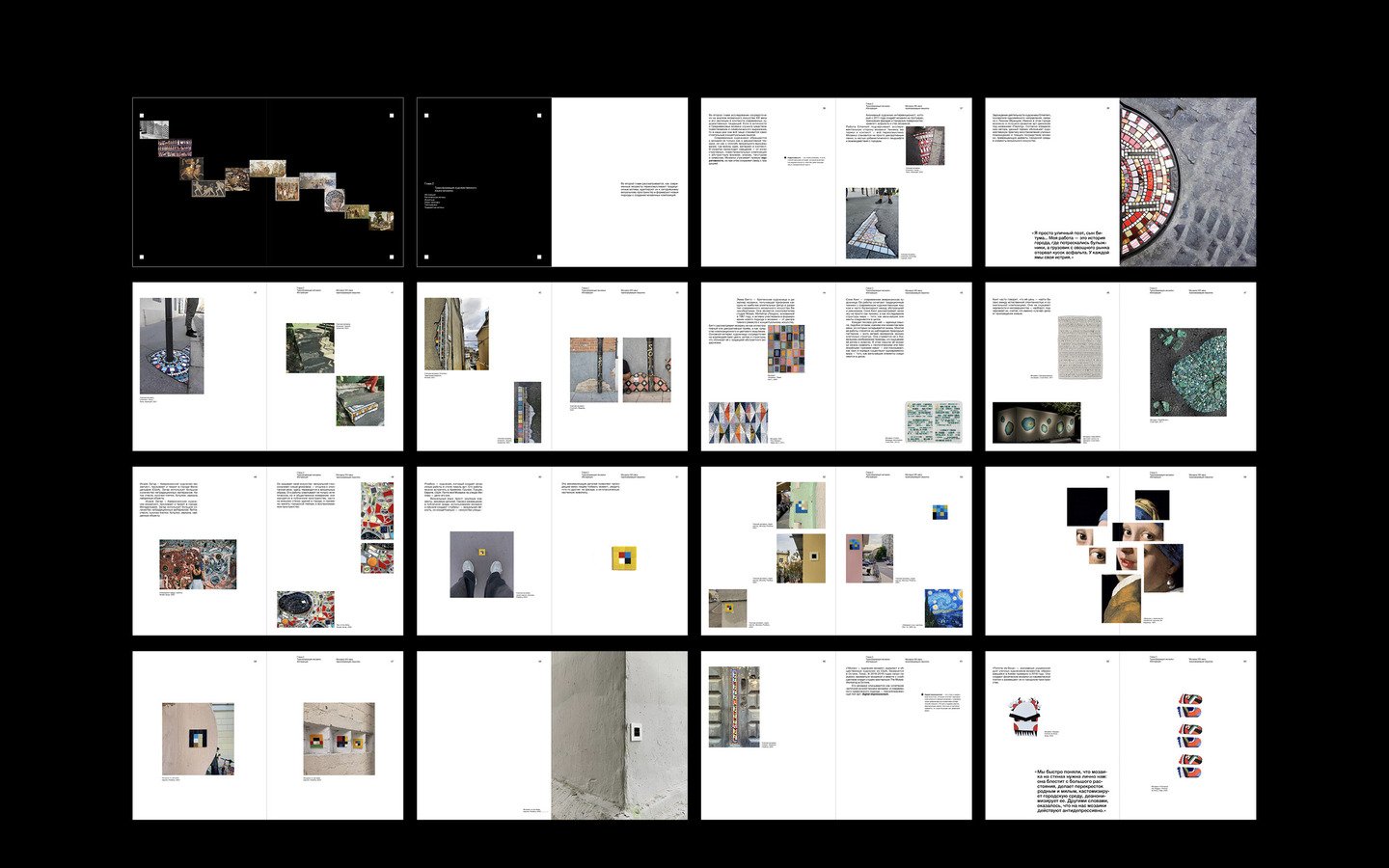 Книга выстроена по принципу мозаичной кладки: текст образует непрерывное поле, в которое вставляются изображения, словно тессеры.