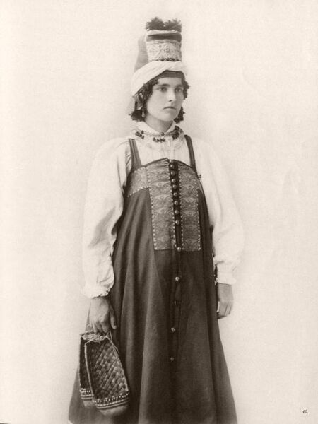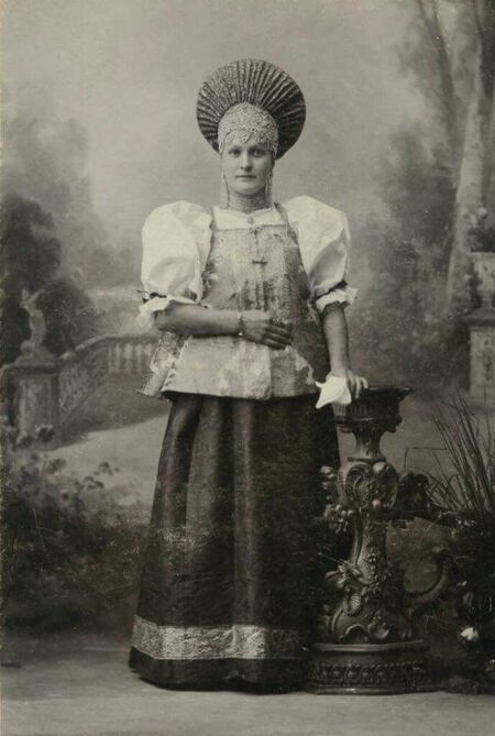 Девушка в праздничном костюме центральных губерний России. Начало XX-го века