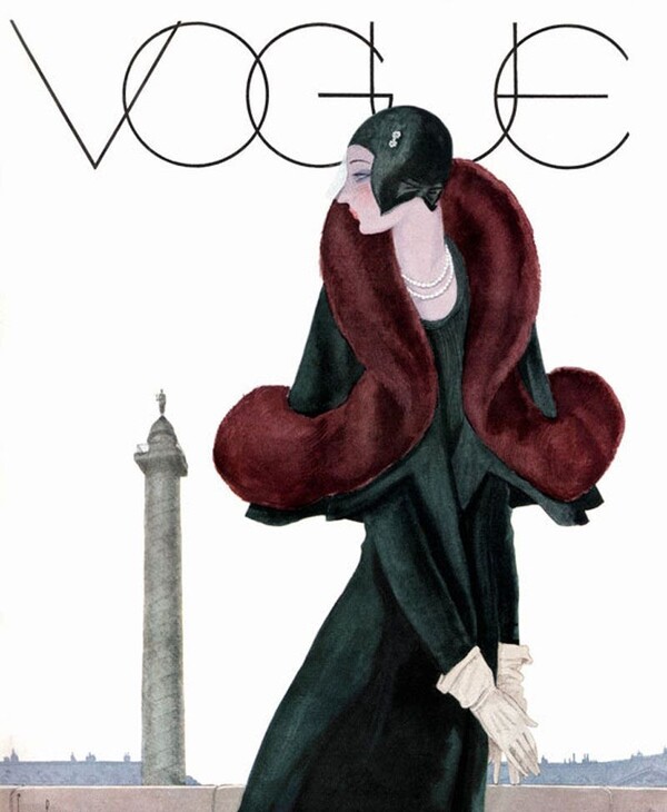 На обложке Vogue женщина также показана на фоне города, но здесь город превращается в живописный силуэт на горизонте: узнаваемая колонна и мягкая линия крыш просто создают «фон Парижа». Модель стоит боком к зрителю, в закрытом, почти статичном позе, и весь акцент уходит на дорогую шубу, украшения и утончённый профиль — атрибуты «новой женщины». Если в «Работнице» женское тело встроено в политический жест и связано с трудом, то в Vogue оно становится носителем стиля и статуса, а город лишь подчеркивает её принадлежность к элитной городской среде.