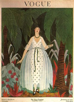 На обложке Vogue 1 июня 1922 года женщина одна у загородного дома, в легком платье с ярким принтом, с зонтом в руке; композиция спокойная, поза расслабленная, вокруг мягкие летние тона. Здесь главное не общественная роль, а стиль и настроение отдыха, именно поэтому две обложки демонстрируют две разные «новые женщины»: советскую — словно говорящую от имени класса, и западную — представляющую личный образ и стиль жизни.