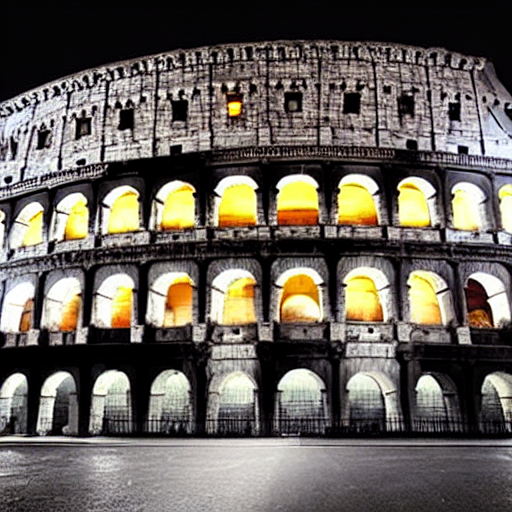 Результаты генерации показали, что даже короткое дообучение позволяет заметно сместить визуальный стиль модели в сторону римской тематики. При этом сохраняется общий реализм, заложенный в базовой версии Stable Diffusion. На ряде изображений появились типичные элементы — Колизей, Форум, Пантеон, узкие улицы с балконами и растительностью, а также правильная передача фактур камня и света.