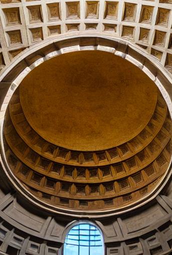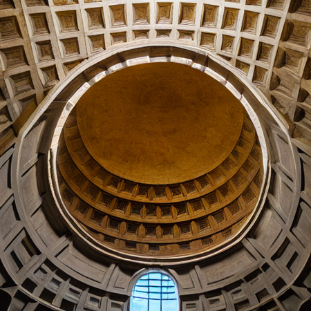 «The Pantheon’s iconic oculus casting beams of light onto the floor, intricate detailing, ancient Roman architecture»