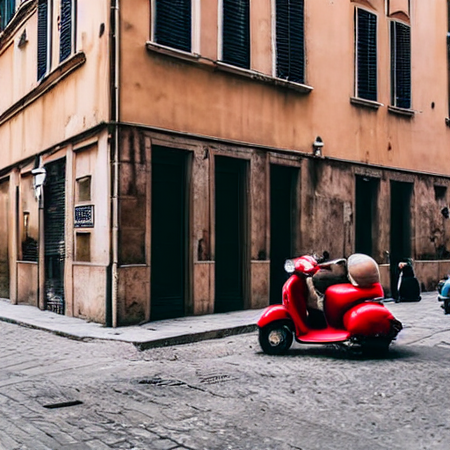 «A busy street in modern Rome with a mix of classic architecture and scooters, cinematic urban photography»,
