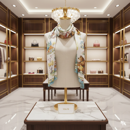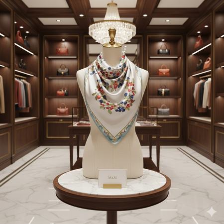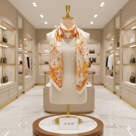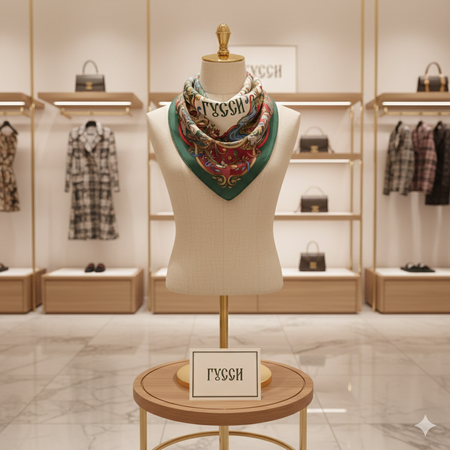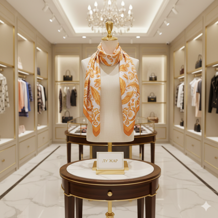 Сгенерирует чтобы это платок продавался в бутике красиво/Изобрази этот платок на фото который, на мокапе платка