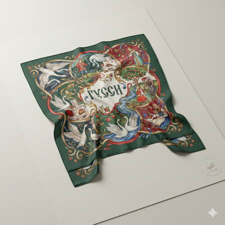1. Уникальность и авторский замысел. Это не массовый продукт, а эксклюзивная серия, созданная с глубоким уважением к источнику. Вы приобретаете не просто вещь, а часть художественного проекта, где классический сюжет переосмыслен через призму современного дизайна. 2. Сильный культурный код и связь с традициями. В мире глобализации такой аксессуар становится ярким заявлением о вашей связи с родной культурой. Он говорит о тонком вкусе, знании истоков и умении ценить глубокие смыслы, скрытые в, казалось бы, простых историях. 3. Остроумная игра слов и актуальность. Концепция каждой модели — это гениальная находка. Названия и визуальные аллюзии мгновенно вызывают улыбку узнавания у тех, кто ценит иронию и fashion-культуру. Это диалог между народной мудростью и миром высокой моды, между лубочной сказкой и концептом современного дизайна. Такой платок — идеальный способ проявить интеллект и чувство юмора. 4. Многофункциональность и универсальность. Платок — один из самых вариативных аксессуаров. Его можно носить на шее, в волосах, на сумке, вместо пояса или оформить им интерьер (в рамке). Он дополнит и деловой образ, и романтическое платье, и casual-лук, добавляя им изюминки и глубины. 5. Качество и смысловой дар. Такой платок станет идеальным подарком близкому человеку. Он говорит: «Я вижу в тебе и смелость героев сказки, и твой уникальный стиль». Это подарок с историей, который будет хранить тепло и мысли дарителя.
