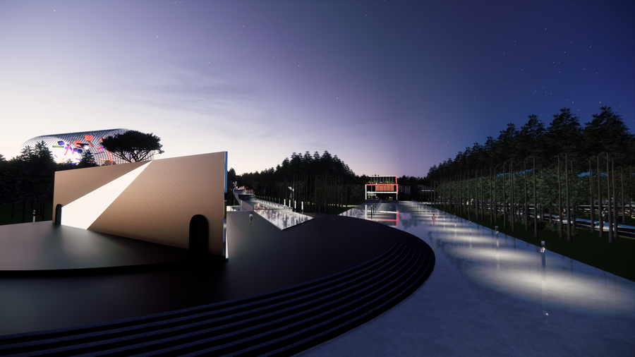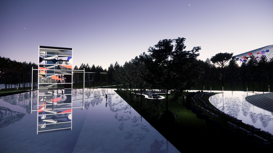 Парковое пространство вдохновлено творчеством и идеями Эля Лисицкого.
