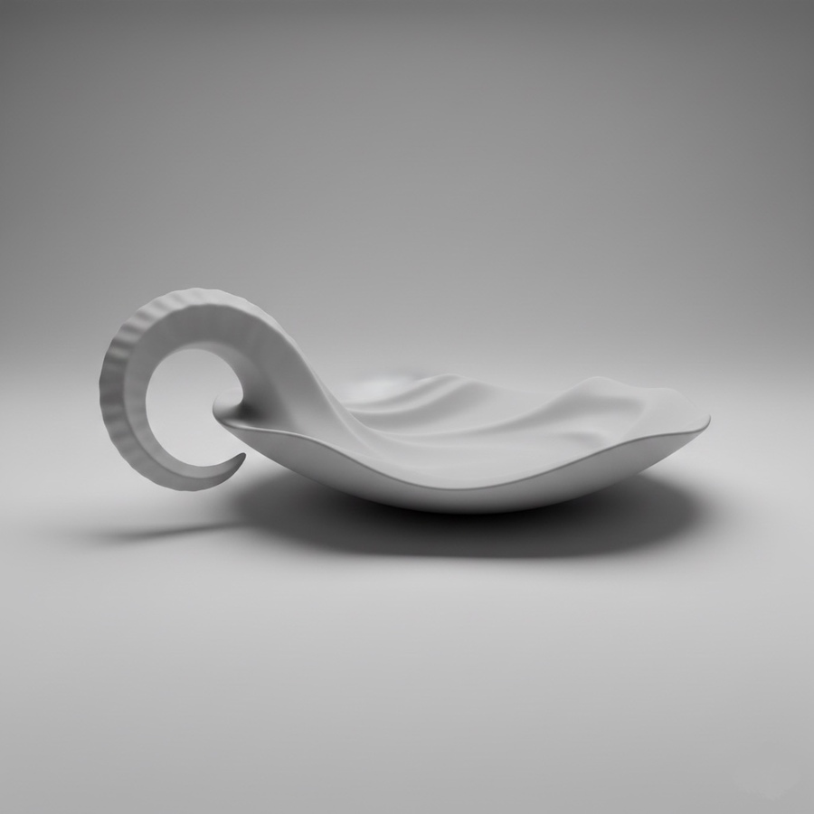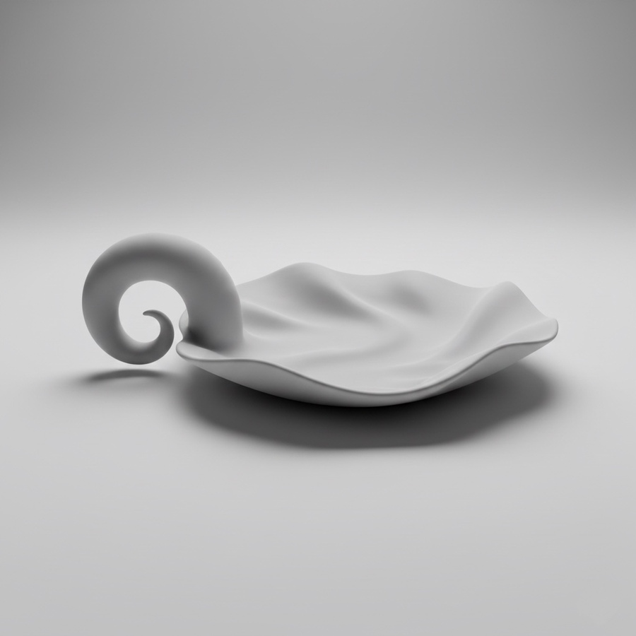 Объекты PLAATE рождаются в диалоге с искусственным интеллектом: форма не задаётся жёстко, а развивается через параметры — кривизну, толщину, радиус завитка, баланс между устойчивостью и текучестью.