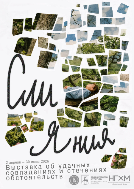 Плакат обращается к теме слияния как к процессу, который невозможно увидеть целиком с первого взгляда. Образ построен как мозаика из фрагментов — природных, человеческих, временных. Отдельные элементы кажутся случайными, разрозненными, но именно в момент их соединения возникает целостный образ и новый смысл.