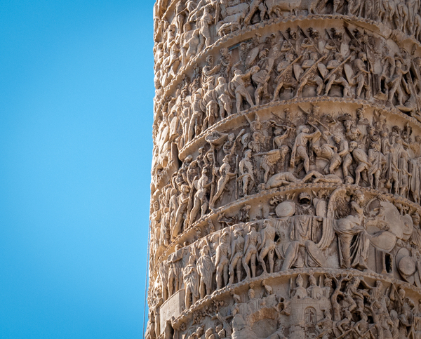 Это древнеримская триумфальная колонна, расположенная в центре современного Рима. Она построена в 113 году н. э. по проекту архитектора Аполлодора Дамасского в честь побед императора Траяна над даками. Рельеф является подробным визуальным отчетом о двух войнах. Он последовательно показывает строительство фортов, битвы, победы и милосердие правителя. Это демонстрация самой идеологии Римского мира: Рим несет цивилизацию и порядок силой оружия варварам. Искусство демонстрирует неизбежность римской мощи и доблесть легионов.