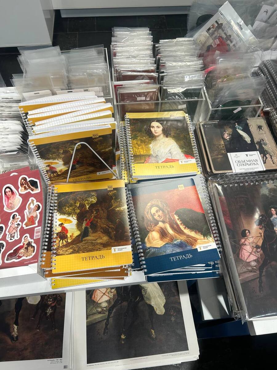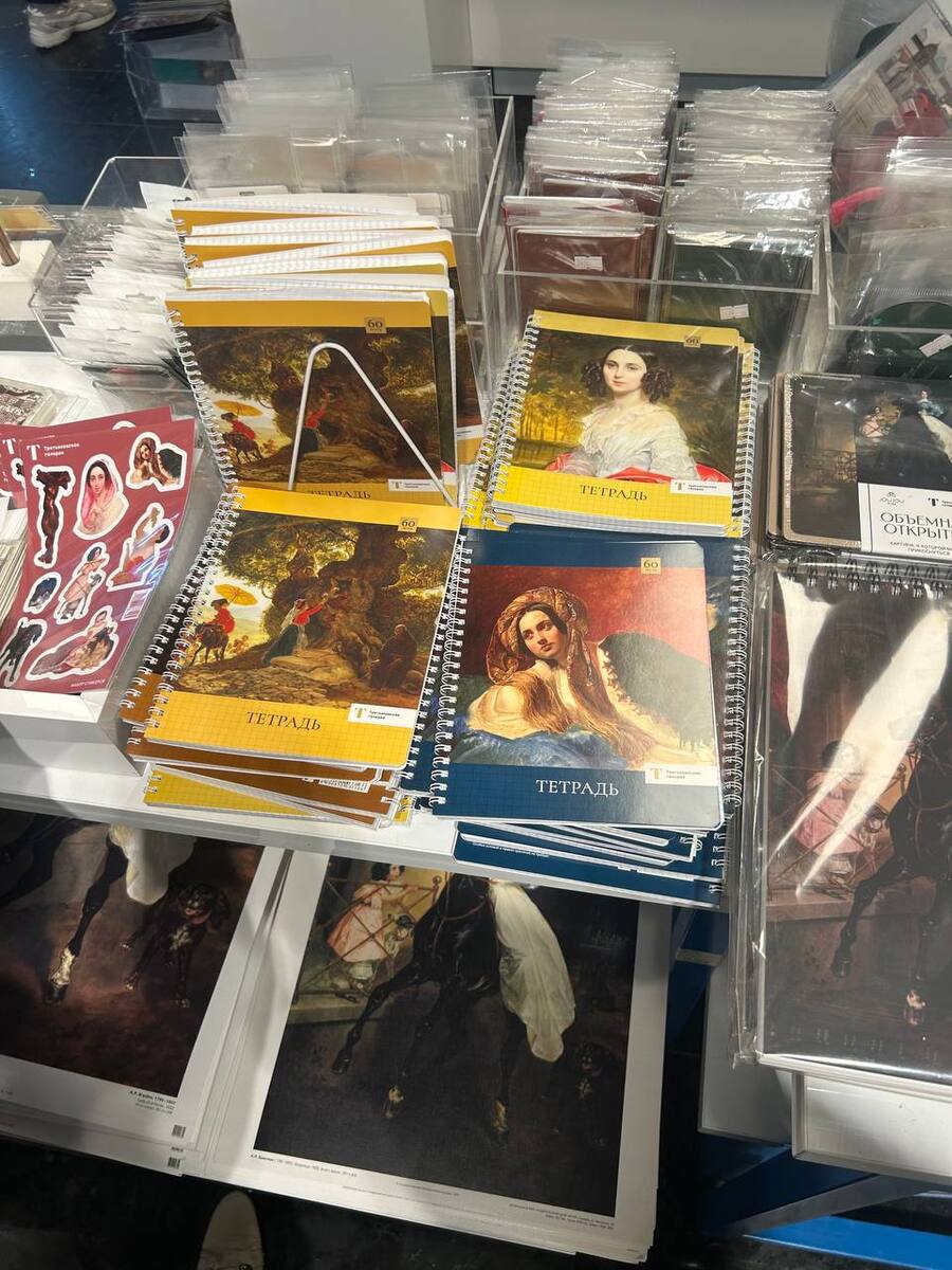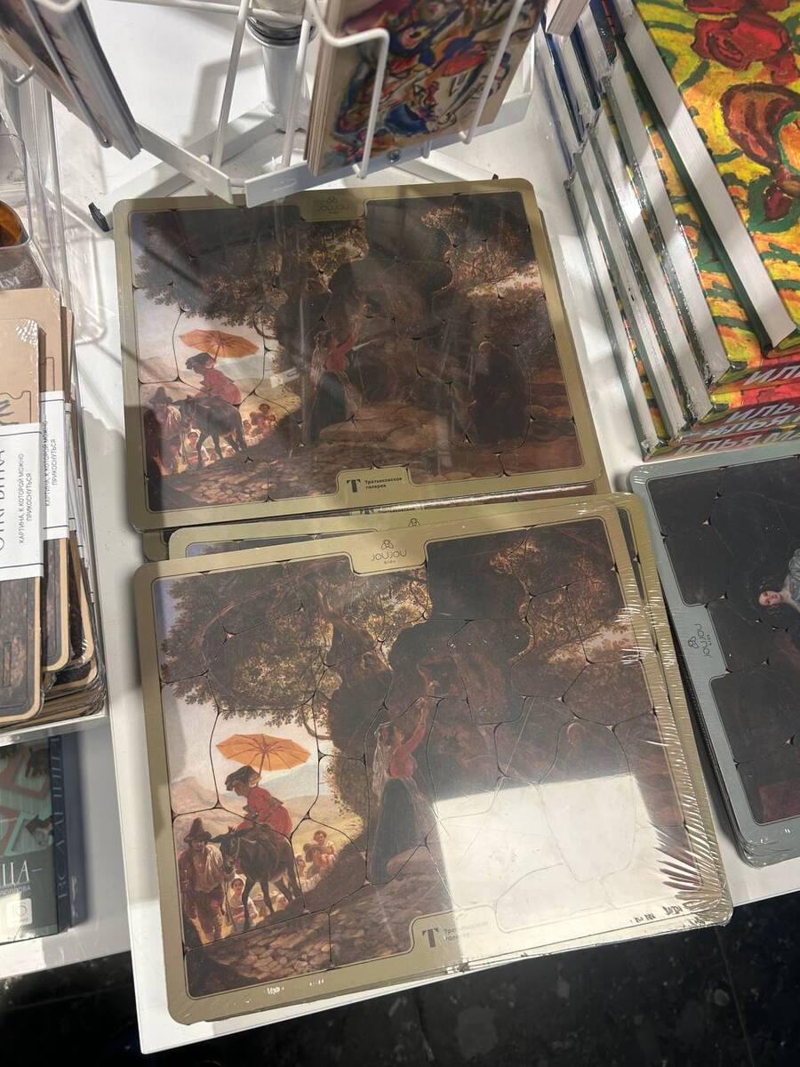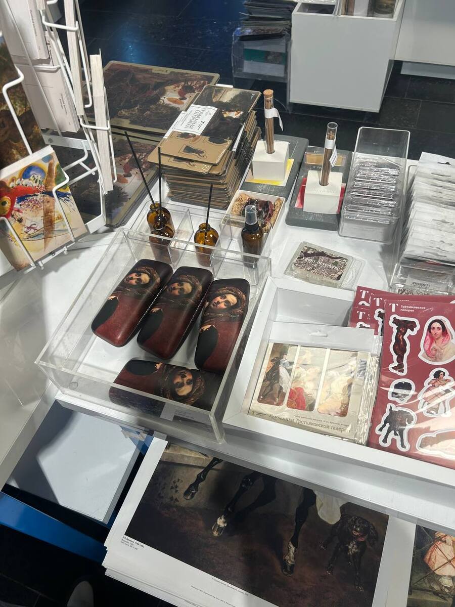 В конце маршрута была возможность зайти в сувенирный магазин и купить мерч. Там представили товары с фрагментами картин, а также более классические позиции: пазлы, ручки, блокноты, открытки и небольшие предметы для дома. Ассортимент выглядел продуманно и позволял унести с собой небольшой кусочек выставки.