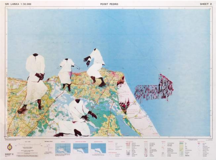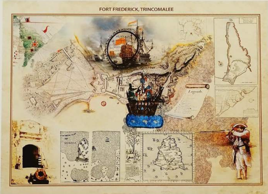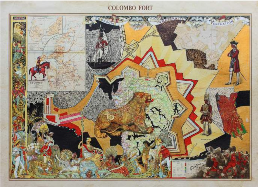 «Я не верю, что мы действительно перешли в постколониальный мир, хотя империалисты и отступили с нашей земли. Мои работы исследуют остатки нематериального колониализма, которые все еще существуют в жизни Шри-Ланки в результате их оккупации. В частности, я проиллюстрировал визуальную историю возникновения фортов Галле в период колониального господства, наложив на карту Южной провинции страны голландской колониальной эпохи иконографию колониальных инструментов, таких как солдаты в красных мундирах, торговые суда и лошади „…“ В своей визуальной критике я подчеркнул ценный ресурс, которым были портовые форты для колонизаторов, и использовал картографию, чтобы показать часто недооцениваемую роль картографирования в колониальных структурах».