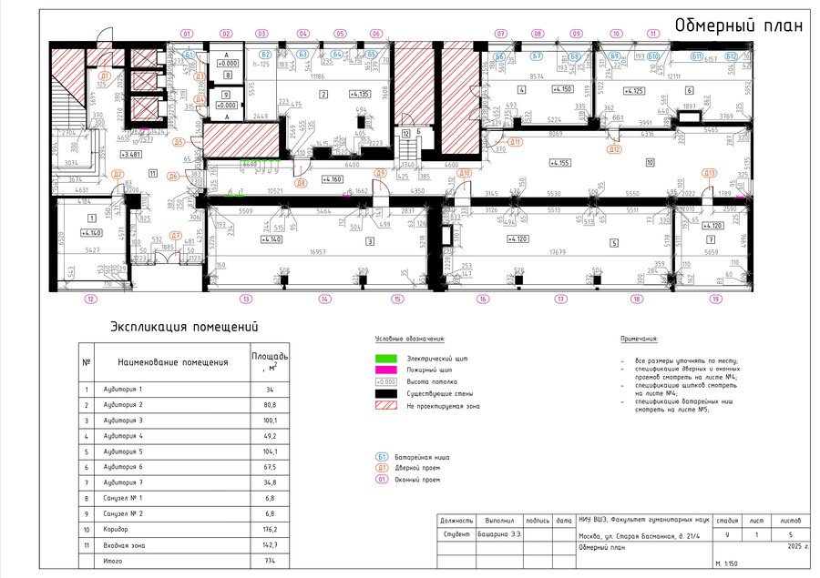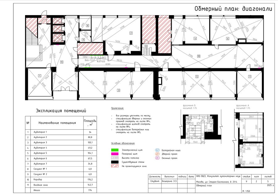 В проекте представлены практические задания, которые выполнялись в 1 модуле. Итоговой работой является чертеж помещения, находящегося в корпусе НИУ ВШЭ, который расположен по адресу Старая Басманная улица, д. 21/4