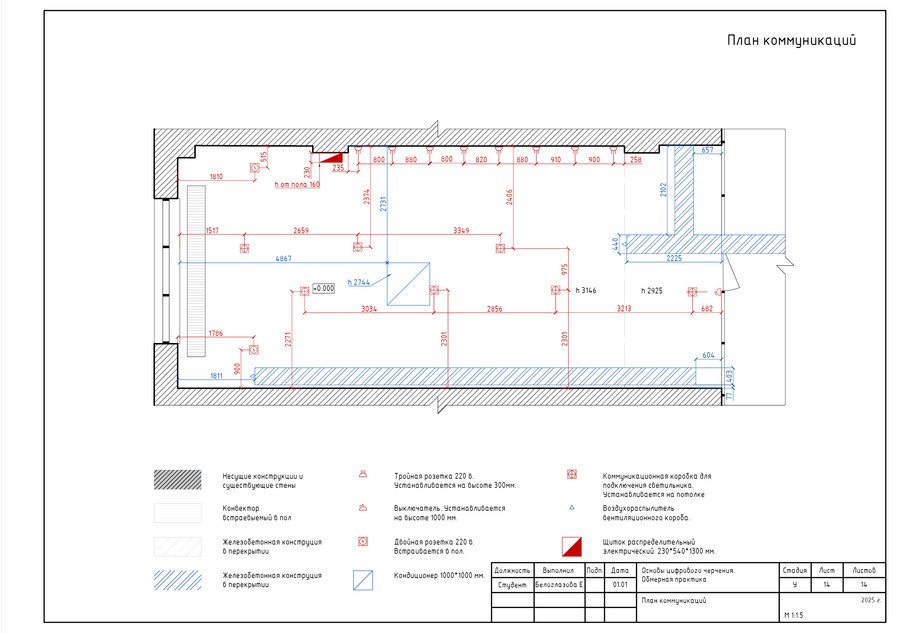 Проект посвящен изучению основных функций AutoCAD. В альбоме представлены практические задания, планы помещений с обмерами и коммуникациями помещения НИУ ВШЭ в Санкт-Петербурге и план возводимых перегородок для учебного кластера в Московском кампусе ВШЭ.