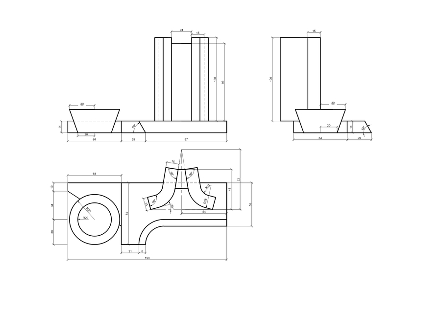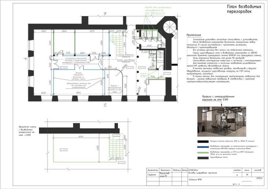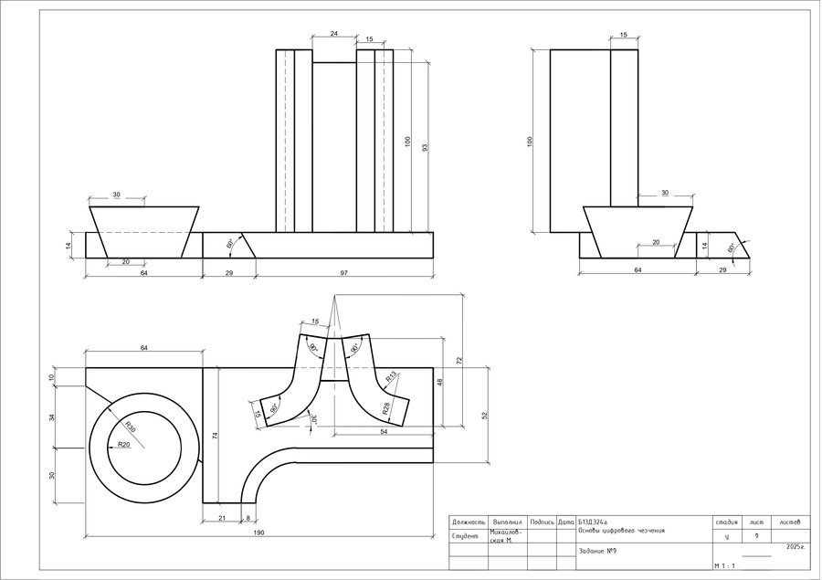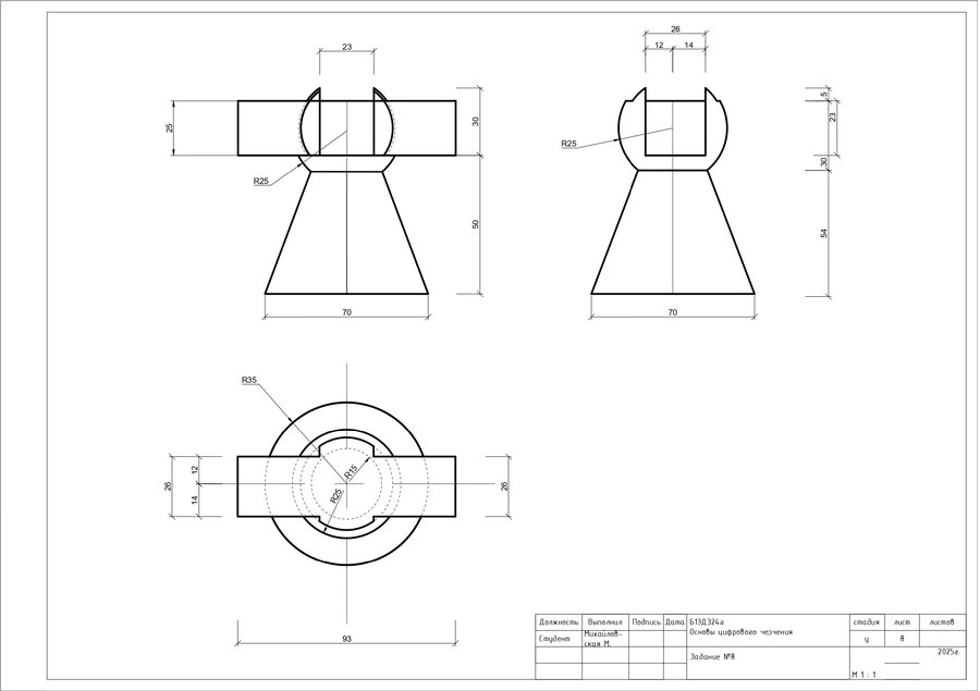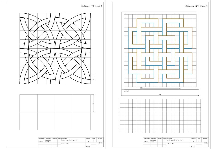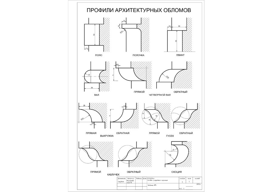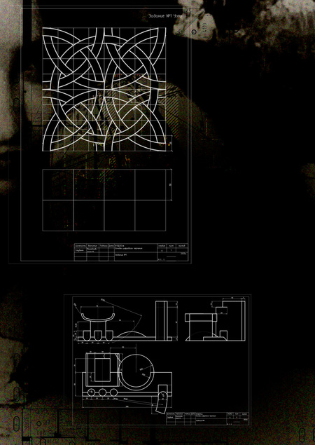 Проект этого модуля представляет собой оформленные листы с практическими заданиями (узорами, вазами, обломами, сопряжениями) и обмерными чертежами корпуса Школы дизайна на Старой Басманной. Работа выполнена в программе AutoCAD.