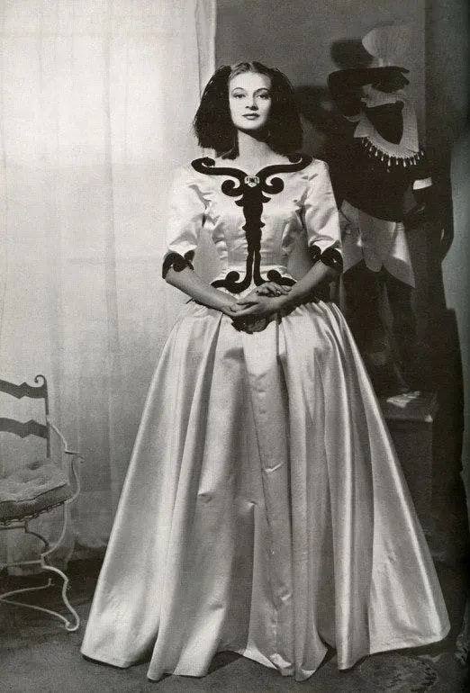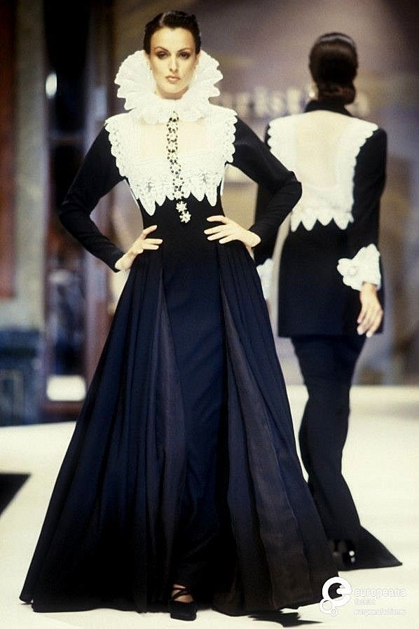 Кристобаль Баленсиага — проводник и связующее звено исторического стиля и современной моды — обращается к образу инфанты с портрета Диего Веласкеса и цитирует его в одноименном платье.
