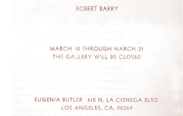 Роберт Барри. На время выставки галерея будет закрыта. 1970. Галерея Юджинии Батлер, Лос-Анджелес