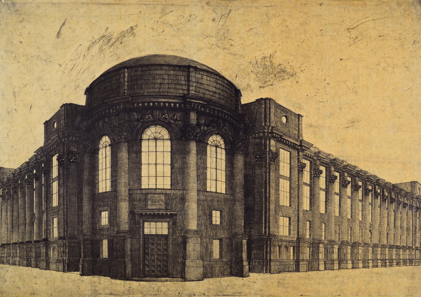 В. А. Веснин, А. А. Веснин. Конкурсный проект здания Наркомата тяжелой промышленности в Зарядье в Москве, 1935. Бумага, тушь