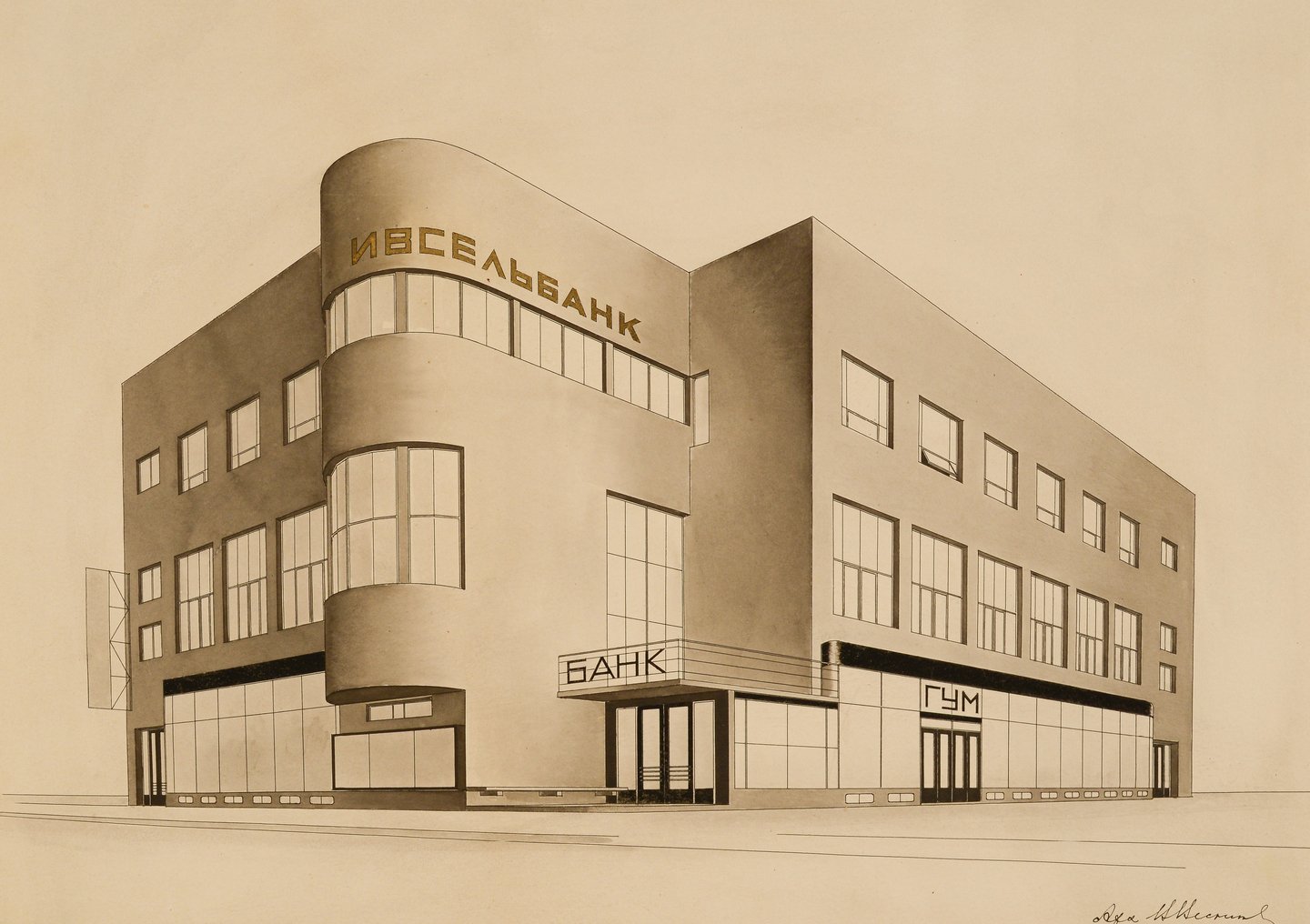 «Становление мастеров», пожалуй, один из самых насыщенных разделов. Он показывает Весниных не только как исключительно мастеров конструктивизма. Перед нами — блестящие эклектики и практики 1910-х. Работая помощниками у Клейна, Щусева, Великовского, они оттачивали мастерство. А в собственных проектах пробовали разнообразные стили и методы: от изысканных особняков и конюшен до грандиозных торговых домов и банков. Чертежи доходных домов, почтамтов, химических заводов показывают невероятную широту заказов и профессиональную востребованность еще до революции. Это — период накопления опыта, экспериментов с формой и функцией, который станет фундаментом для будущего рывка в новые форматы освоения пространства.