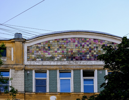 Фасад украшен майоликой, изысканными цветочными узорами, витиеватыми элементами. Дом выделяется изяществом декора, относящимся к символическому течению модерна.