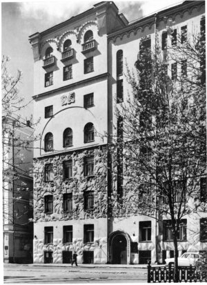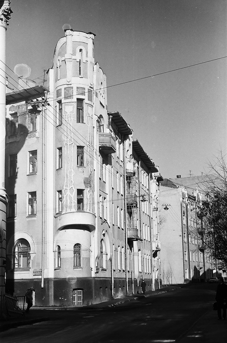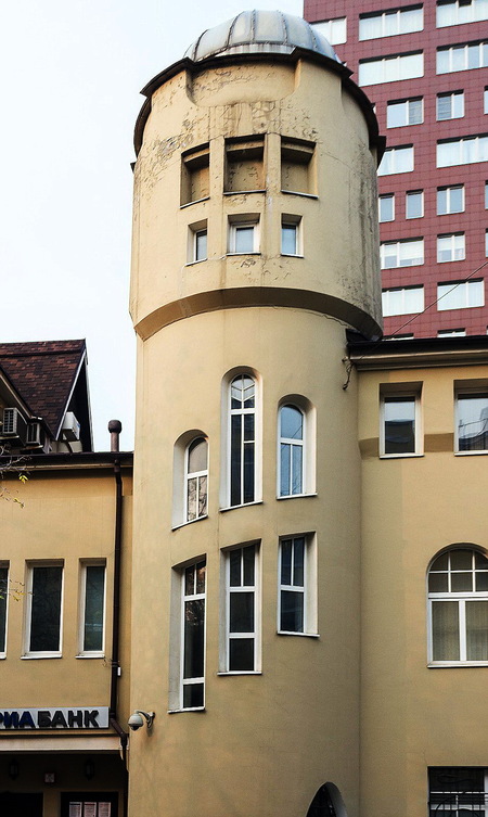 Здание отличает более камерная композиция и мягкая пластика фасадов, что позволяет отнести его к органической линии модерна. Выбран за камерный характер архитектуры и тонкую пластику форм, создающих ощущение интимности пространства.