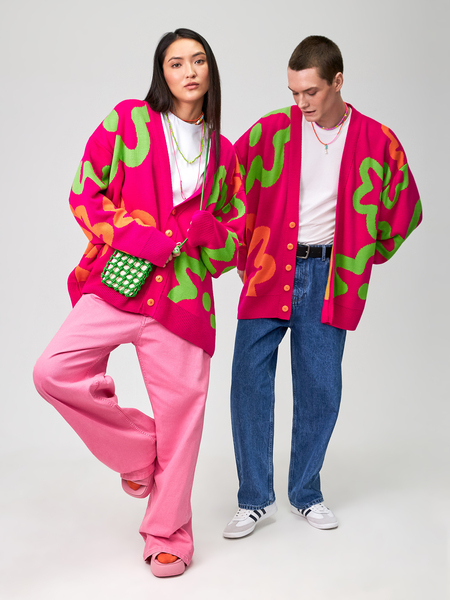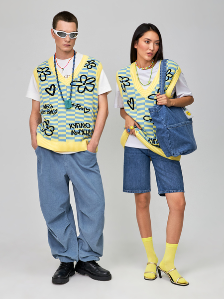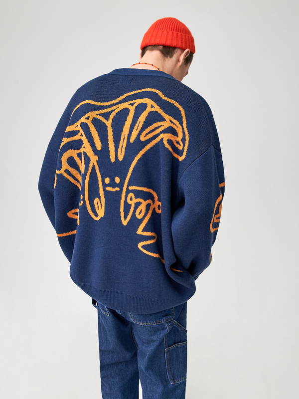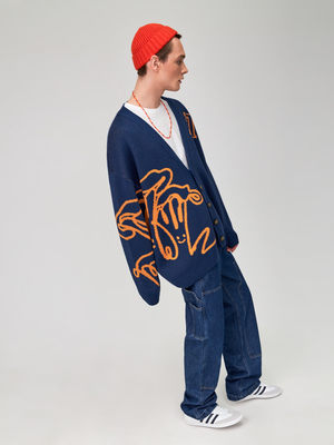 Над созданием коллекции трикотажа работали дизайнеры RASKROI, вдохновившиеся дипломной работой Арины Штольц, выпускницы СПбГУПТД и победительницы конкурса Raskroi Design Talent. В рамках конкурса дизайнеры могли предложить свои идеи, а затем реализовать их вместе с ритейлером Concept Group. Итогом становится выпуск коллекции одежды с оригинальным дизайном и ее продажа через магазины сети. Победитель также получил денежный приз. В создании дропа WonderDvor прослеживается тренд на 90-е и сентиментальную ностальгию. В то же время яркие цветовые сочетания и современный oversize-силуэт делают получившиеся модели актуальными для сегодняшнего времени. В состав лимитированной коллекции вошли трикотажные жилеты, кардиганы и джемперы в стиле унисекс. Мною в дополнение был предложен сдержанно-синий кардиган с оранжевыми лисичками отрисованными в стиле one line, как альтернатива чересчур ярким цветам коллекции.