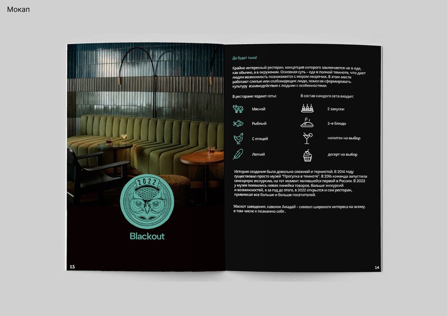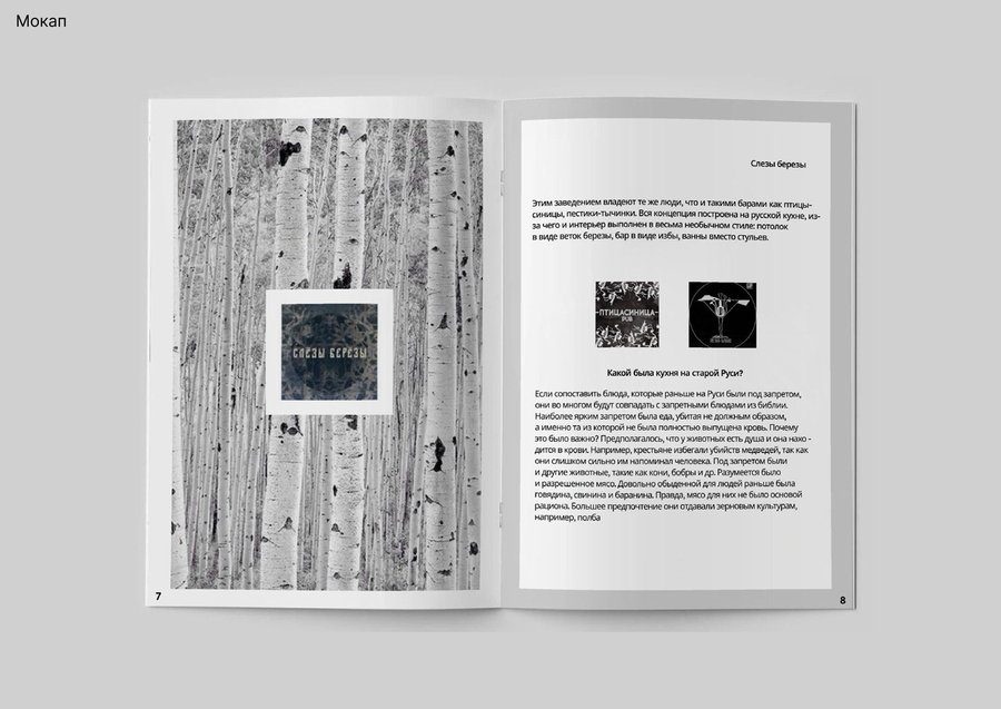 Данный зин дает возможность узнать новые места и необычные факты, он делает акцент на то, на сколько по-разному люди смотрят на кафе, рестораны и бары и на сколько разные рождаются концепции по сути одинаковых мест. Разнятся не только концепции и внешний вид, но и то, как заведения преподносят себя. У одного есть условные обозначения сетов, у другого идет акцент на яркие цвета, а у третьего главным является рассказ об основателях.
